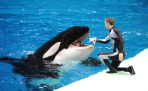 ثم يتم استخدام Orcas للأداء في العروض في جميع أنحاء العالم ويتم تدريبهم بعدة طرق مختلفة وأداء الحركات والحيل للسياح والزوار، بحيث يتم تعليم بعض الأوركا الحيل مثل نفخ الفقاعات والقفز عبر الأطواق ولعب كرة القدم، يتطلب الأمر الكثير من الصبر والتدريب لتعليم الأوركا هذه الحيل يجب على المدرب أن يكون ذو مهارة عالية في تدريب الاوركا ، و إبقاءه مهتمًا ومشاركًا في المهمة التي يقوم بها.
