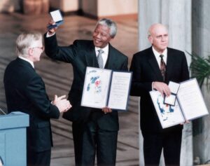كان نيلسون مانديلا أول رئيس أسود لجنوب إفريقيا. قاد البلاد خلال فترة من التغيير الاقتصادي والاجتماعي الكبير. انتخب عام 1994 ، وخدم لفترة واحدة من سنة 1994 إلى سنة 1999. وُصف بأنه والد الأمة. حصل على جائزة نوبل للسلام والميدالية الرئاسية للحرية والإستقلال.